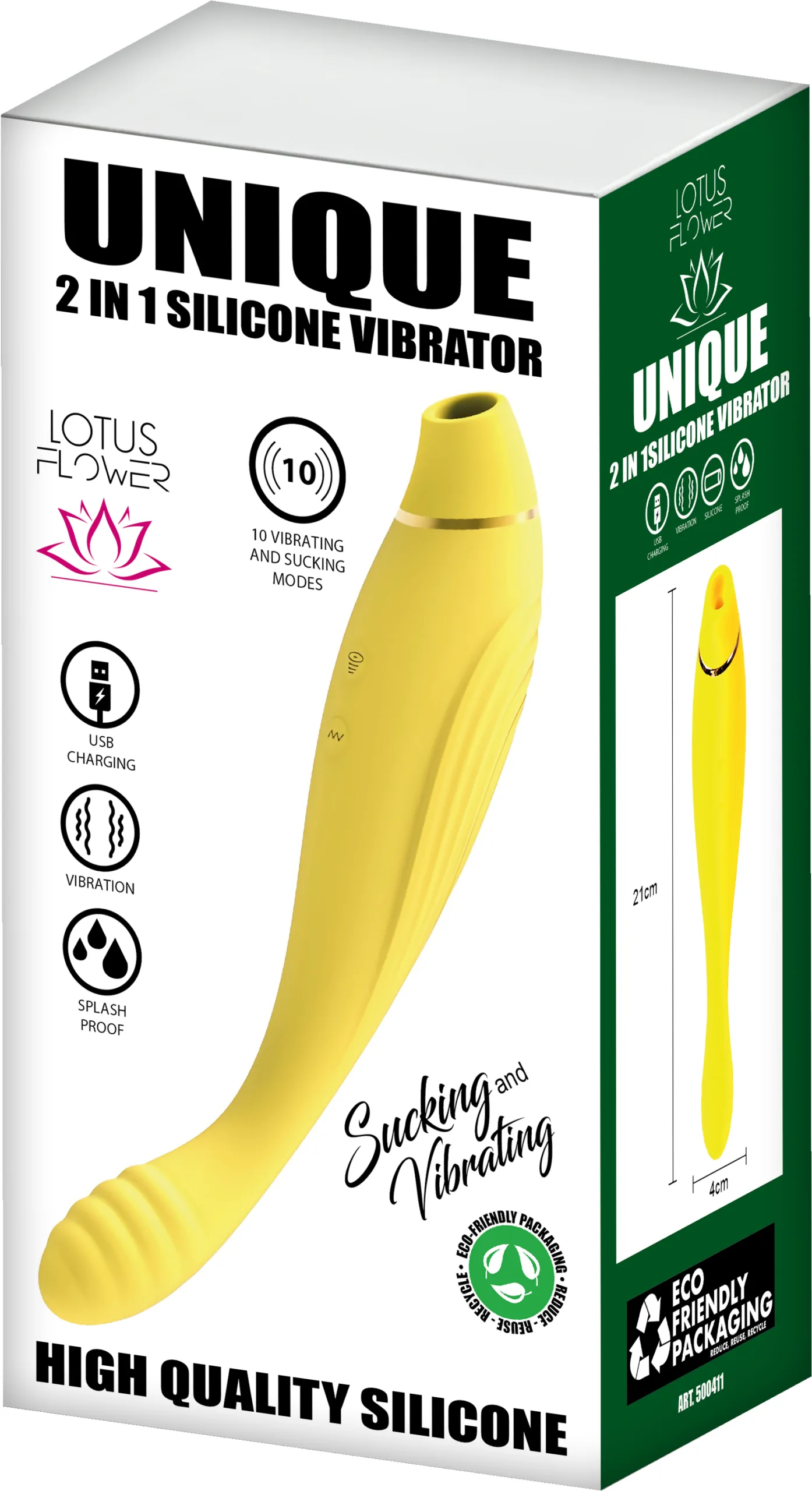 UNIQUE! Two functions in one toy made of the highest quality silicone, featuring 10 vibration modes and 10 sucking patterns. Its vibrating, elastic, and velvety tip can adapt to your needs, while its suction function can completely satisfy your every desire.